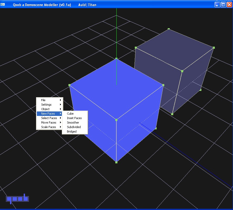 Qoob libraries are out! You can now include qoob models in intros or anything really. To go with the libs, the modeller has been upgraded and many bugs removed. It should be 99% stable now. There are a few new features such as moving the model using the mouse (much requested). Oh and Undo now works ... ahem...better.