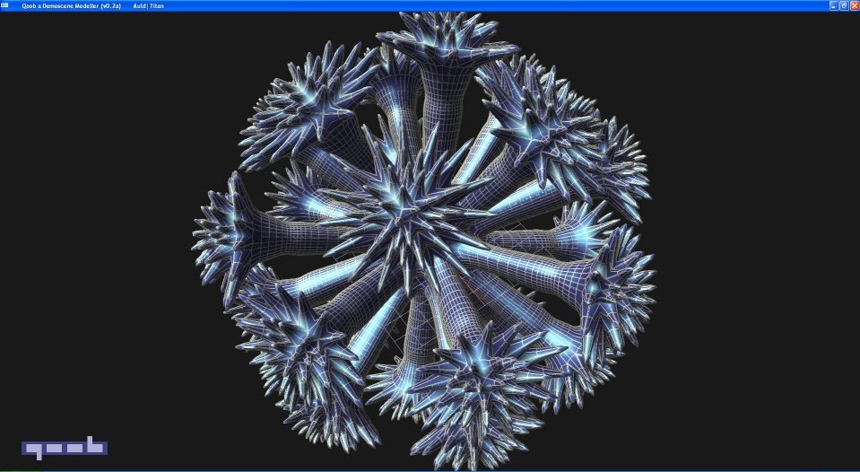 Qoob now has about 80% of the functionality I want in a basic modeller, at least for now. For personal reasons I will take a break from coding for a few weeks and leave you with a few more sample images. The next step will be to make an actual intro using the tool.